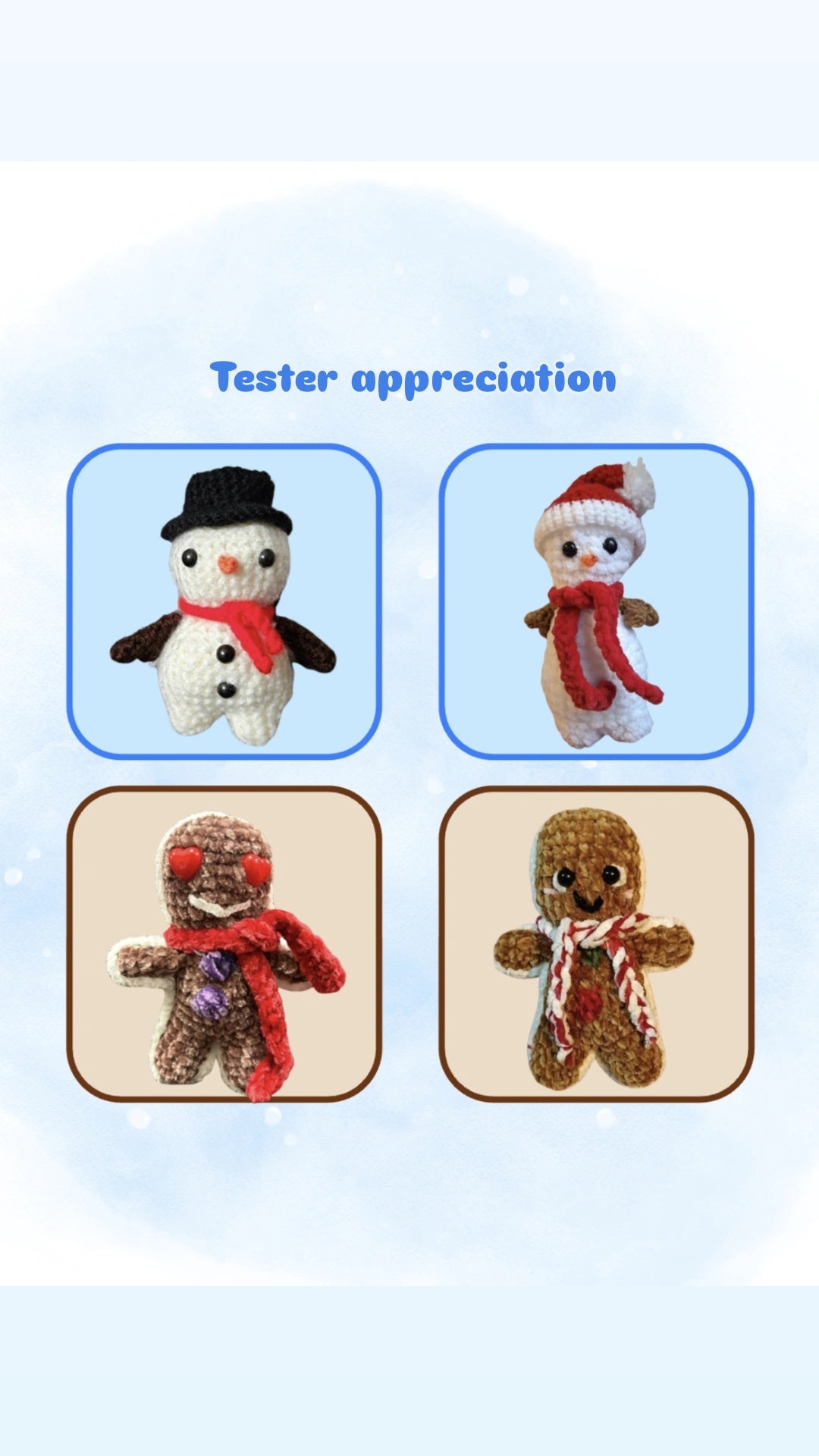 Get both Doughy the Cookie and Snowy the Snowman in one delightful package. Doughy is a beginner-friendly pattern featuring a quirky cookie with a cozy scarf and icing details no baking required! Snowy offers intermediate crafters a no-sew snowman with three interchangeable outfits and scarves, including a Santa hat, blue beanie, and top hat for endless styling fun. Perfect for holiday decorations, thoughtful gifts, or adding whimsical charm to any space. Hook up both characters and let your creativity shine!